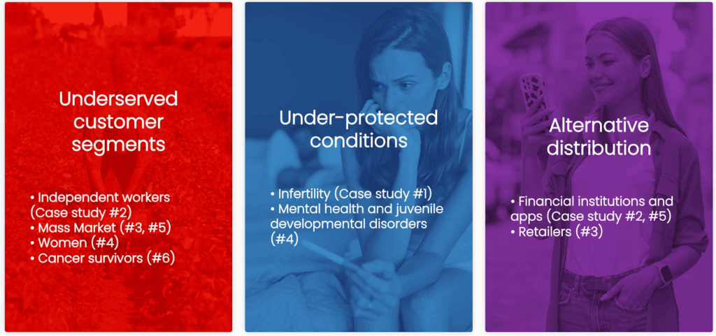 Como muestran estos estudios de caso, las aseguradoras con visión de futuro están explorando nuevas vías para cerrar la brecha en seguros de vida, desarrollando productos novedosos y enfoques de distribución que respondan a las necesidades de clientes desatendidos y aborden los obstáculos de acceso.